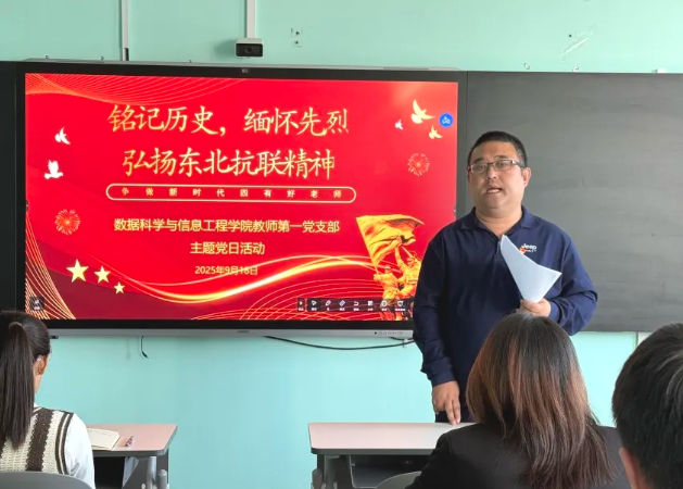 数据科学与信息工程学院教师第一党支部开展“铭记历史、缅怀先烈,弘扬东北抗联精神”主题党日,通过沉浸式红色教育,激励党员从抗联精神中汲取奋进力量,争做新时代“四有”好老师。活动中,党员们共同学习了习近平总书记在纪念中国人民抗日战争暨世界反法西斯战争胜利80周年大会上的讲话,集中观看了党员教育电视片《丰碑》:第一部《东北抗联精神》,并围绕“如何在新时代弘扬抗联精神”进行了讨论。党员们纷纷表示,要立足新时代传承抗联精神,立足岗位带头担当作为、攻坚克难、追求卓越,为推动学校高质量发展持续贡献力量。