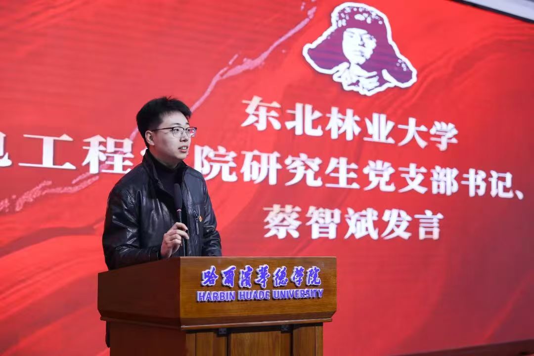 东北林业大学机电工程学院研究生党支部书记、辅导员蔡智斌在发言中表示,雷锋精神是新时代青年成长的精神灯塔。他鼓励广大青年将雷锋精神融入科研实践与日常学习,以严谨的学术态度和强烈的社会责任感,回应时代召唤,服务国家发展,真正实现知识报国、奉献社会。