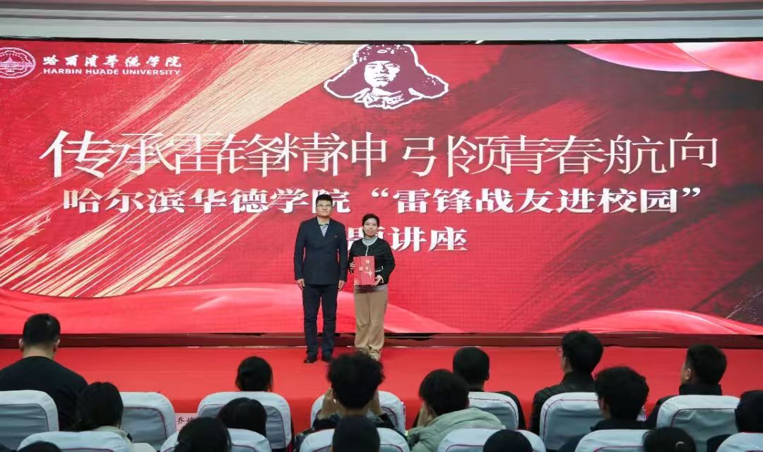 为大力弘扬雷锋精神,激发广大师生学习榜样、服务社会热情,3月12日,哈尔滨华德学院在图书馆学术报告厅开展“传承雷锋精神 引领青春航向‘雷锋战友进校园’”主题活动。活动特邀雷锋同志生前战友乔安山的孙女、辽宁雷锋干部学院教师乔婷娇到校做专题讲座。学校党委组织部部长王薪宇、党委宣传部部长刘树、党委学生工作部部长马旭远、各学院学发中心主任、团总支书记、全体辅导员及学生代表共同参加。东北林业大学机电工程学院研究生党支部师生、哈尔滨顺迈学校师生及裕民街道学府社区代表应邀参加活动。