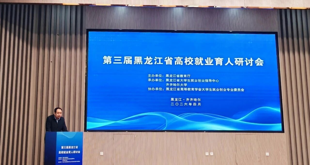 4月9日至10日,第三届黑龙江省高校就业育人研讨会在齐齐哈尔大学召开,会议由黑龙江省教育厅学生处处长齐国涛主持。本次研讨会聚焦新时代高校就业育人提质增效,汇聚全省高校教育工作者共商发展路径、共话育人举措。哈尔滨华德学院校长李长威、副校长魏可霏、就业创业中心主任刘博及相关工作人员应邀参会,积极参与交流研讨,充分展现学校在就业育人与产教融合领域的办学成果与责任担当。