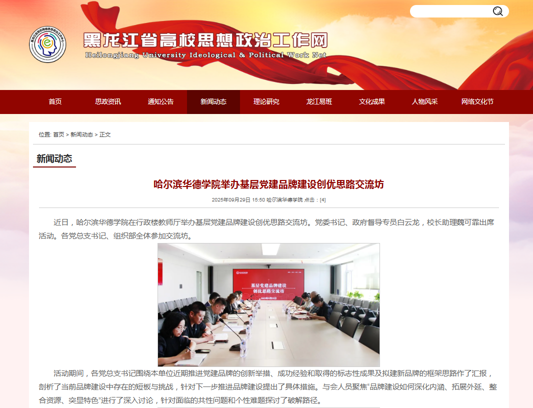 【黑龙江省高校思想政治工作网】哈尔滨华德学院举办基层党建品牌建设创优思路交流坊