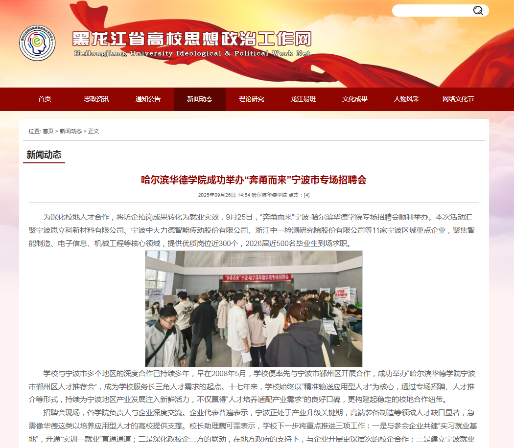【黑龙江省高校思想政治工作网】哈尔滨华德学院成功举办“奔甬而来”宁波市专场招聘会