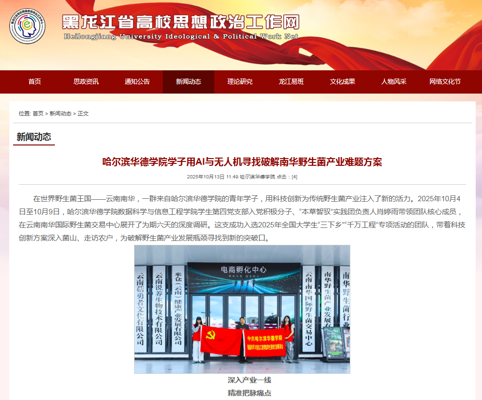 【黑龙江省高校思想政治工作网】哈尔滨华德学院学子用AI与无人机寻找破解南华野生菌产业难题方案