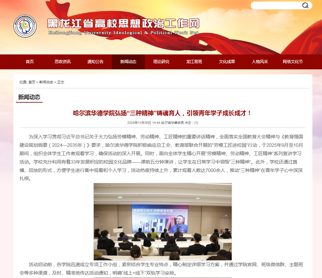 【黑龙江省高校思想政治工作网】哈尔滨华德学院弘扬“三种精神”铸魂育人,引领青年学子成长成才!