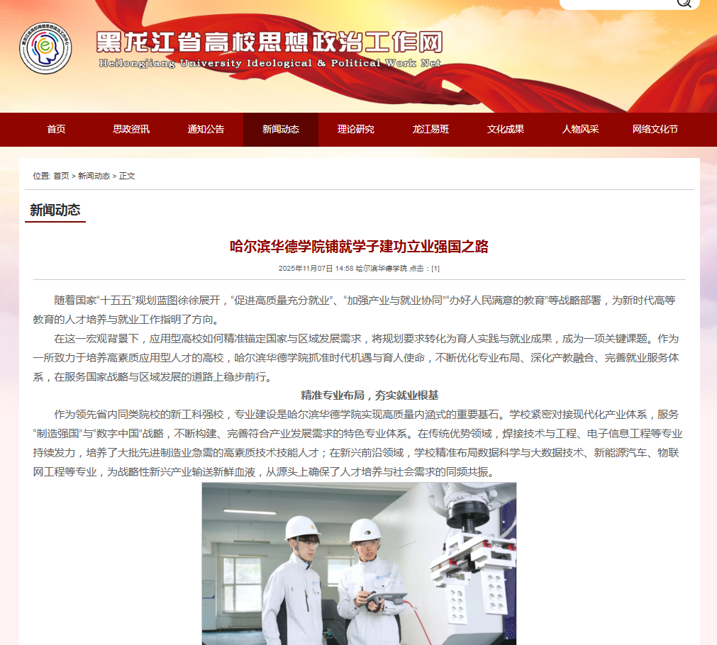 【黑龙江省高校思想政治工作网】哈尔滨华德学院铺就学子建功立业强国之路