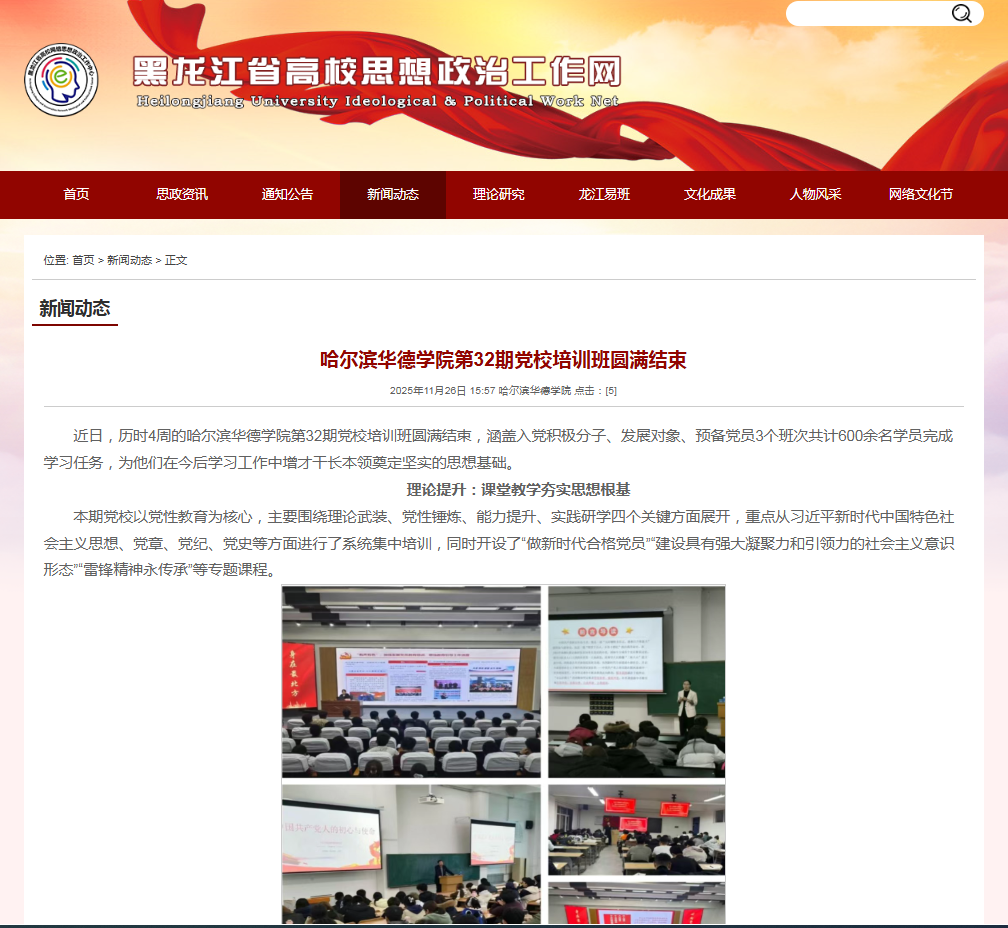 【黑龙江省高校思想政治工作网】哈尔滨华德学院第32期党校培训班圆满结束
