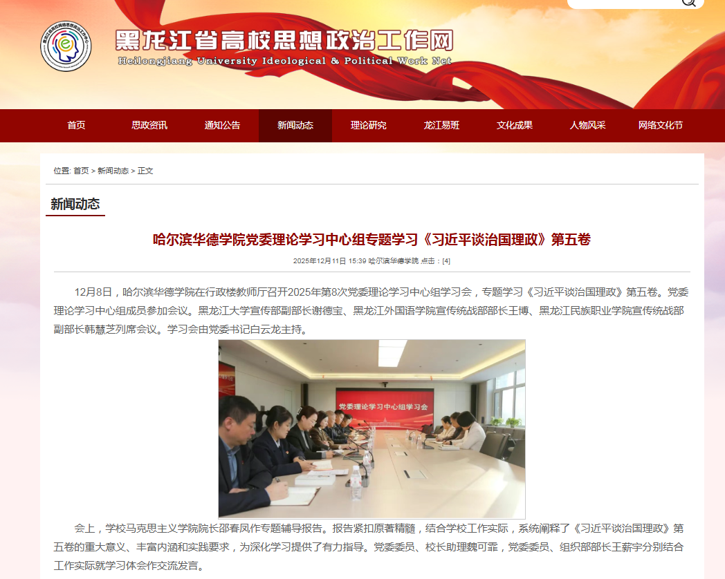 【黑龙江省高校思想政治工作网】哈尔滨华德学院党委理论学习中心组专题学习《习近平谈治国理政》第五卷