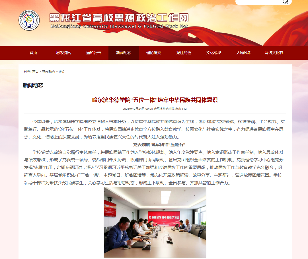 【黑龙江省高校思想政治工作网】哈尔滨华德学院“五位一体”铸牢中华民族共同体意识