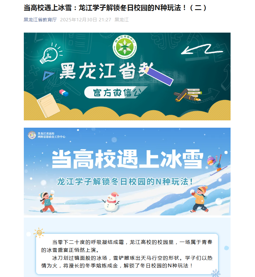 【黑龙江省教育厅】当高校遇上冰雪:龙江学子解锁冬日校园的N种玩法!(二)
