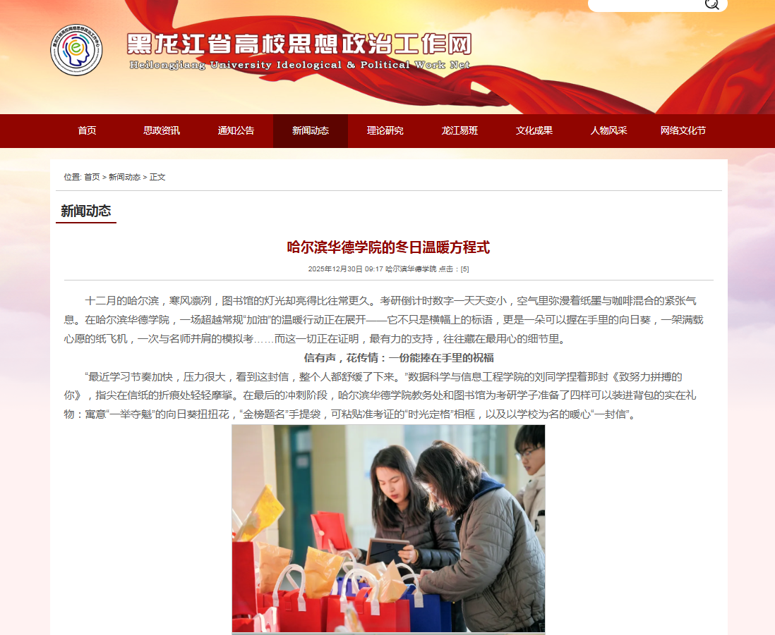 【黑龙江省高校思想政治工作网】哈尔滨华德学院的冬日温暖方程式