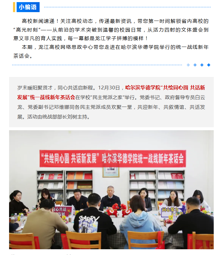 【龙江高校网络思政中心】共绘同心圆 共话新发展——哈尔滨华德学院举行统一战线新年茶话会