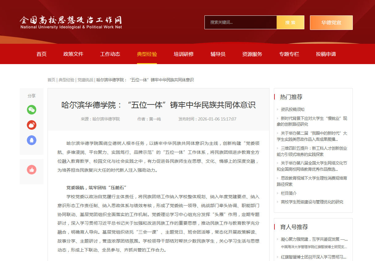 【全国高校思想政治工作网】哈尔滨华德学院:“五位一体”铸牢中华民族共同体意识