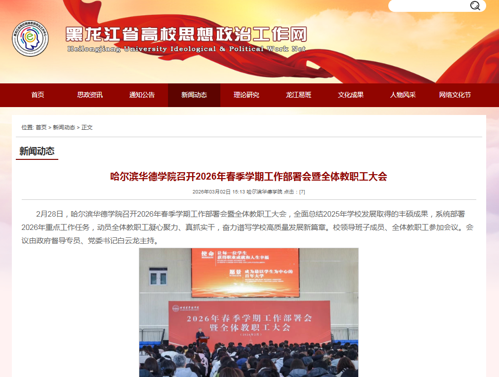 【黑龙江省高校思想政治工作网】哈尔滨华德学院召开2026年春季学期工作部署会暨全体教职工大会