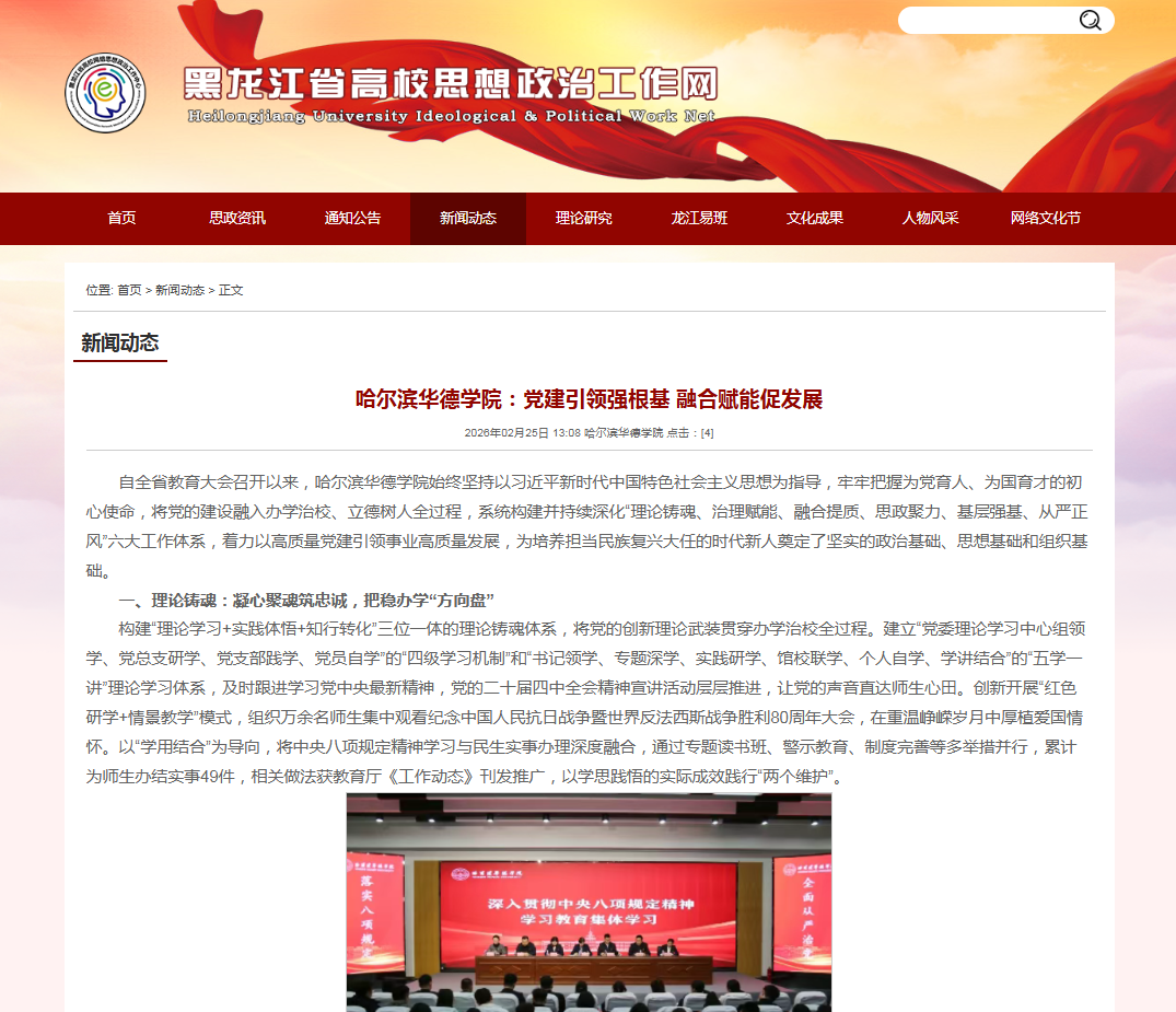 【黑龙江省高校思想政治工作网】哈尔滨华德学院:党建引领强根基 融合赋能促发展
