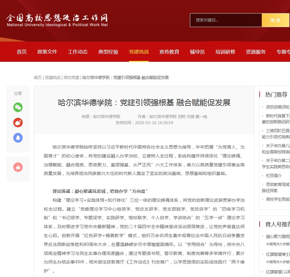 【全国高校思想政治工作网】哈尔滨华德学院:党建引领强根基 融合赋能促发展