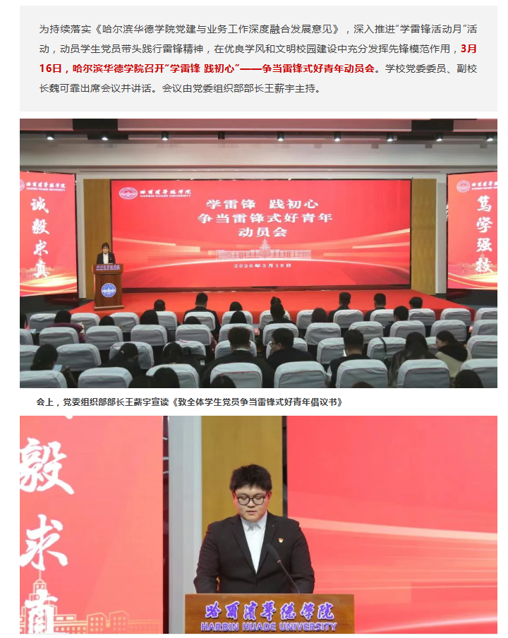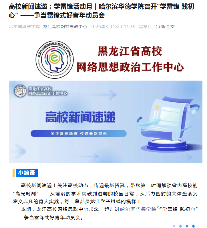 【龙江高校网络思政中心】哈尔滨华德学院召开“学雷锋 践初心” ——争当雷锋式好青年动员会