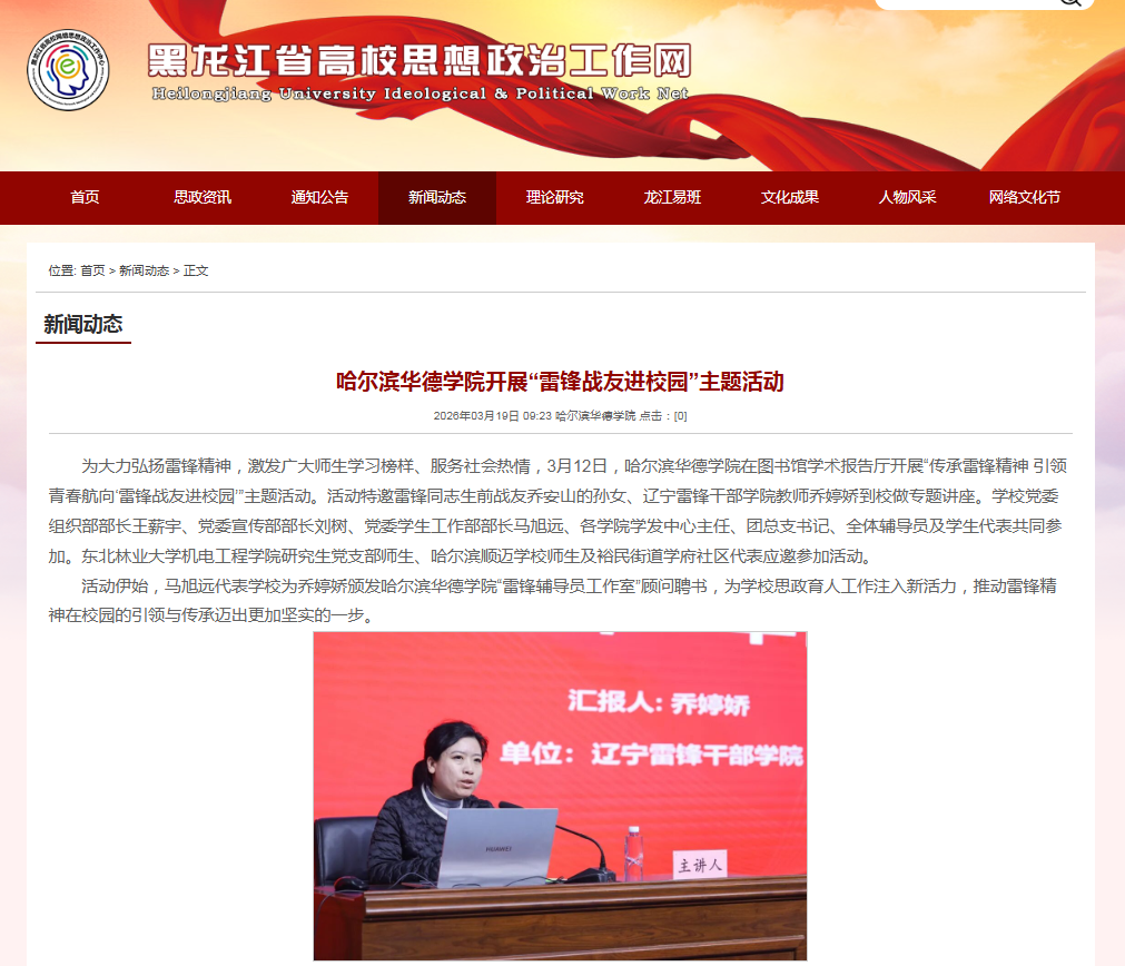 【黑龙江省高校思想政治工作网】哈尔滨华德学院开展“雷锋战友进校园”主题活动
