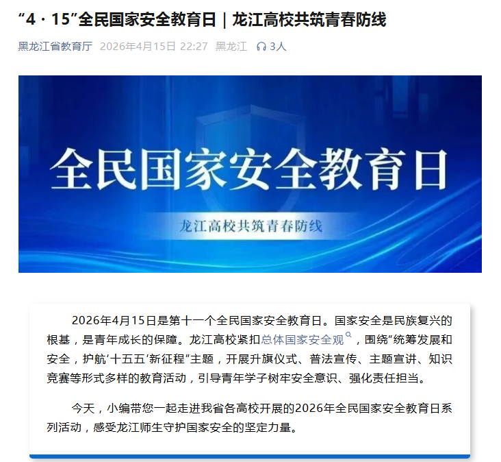 【黑龙江省教育厅】全民国家安全教育日 | 哈尔滨华德学院:以青春之责 筑安全之基