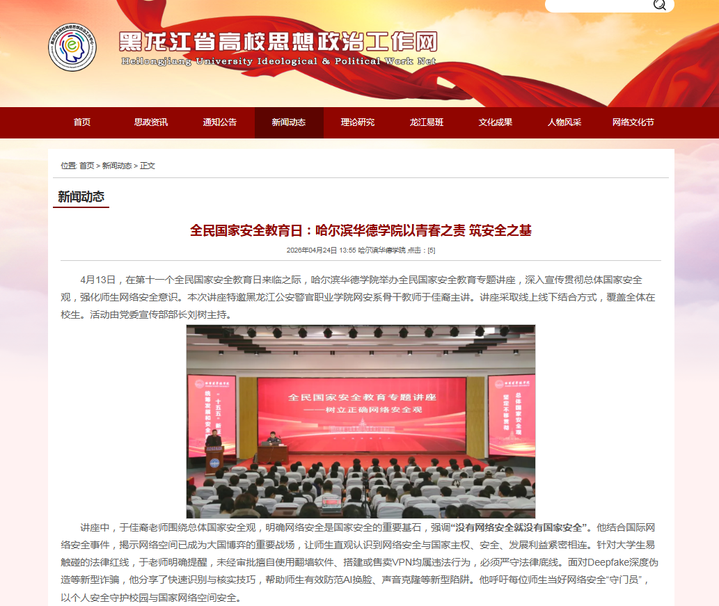 【黑龙江省高校思想政治工作网】全民国家安全教育日:哈尔滨华德学院以青春之责 筑安全之基