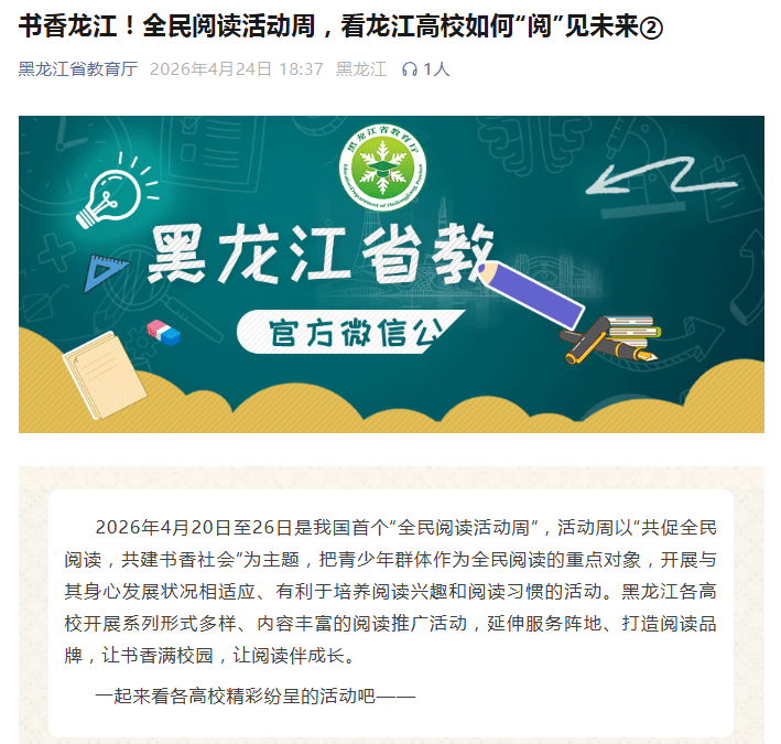 【黑龙江省教育厅】书香龙江!全民阅读活动周,看龙江高校如何“阅”见未来②