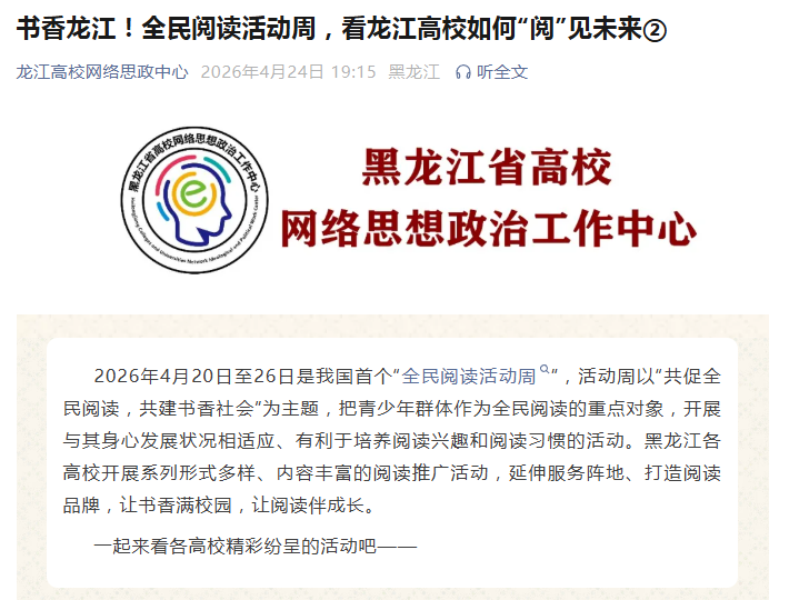 【龙江高校网络思政中心】书香龙江!全民阅读活动周,看龙江高校如何“阅”见未来②