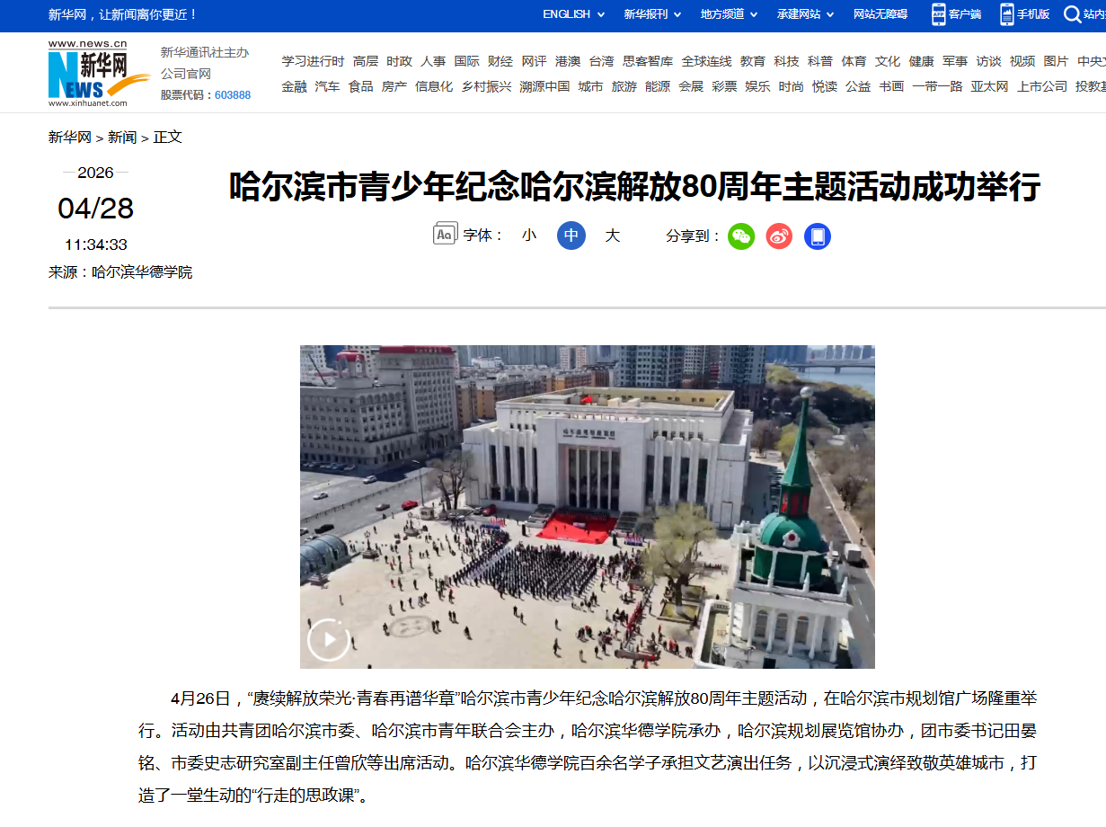 【新华网】哈尔滨市青少年纪念哈尔滨解放80周年主题活动成功举行