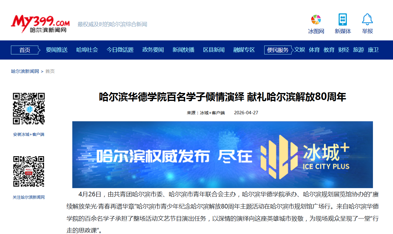 【哈尔滨新闻网】哈尔滨华德学院百名学子倾情演绎 献礼哈尔滨解放80周年