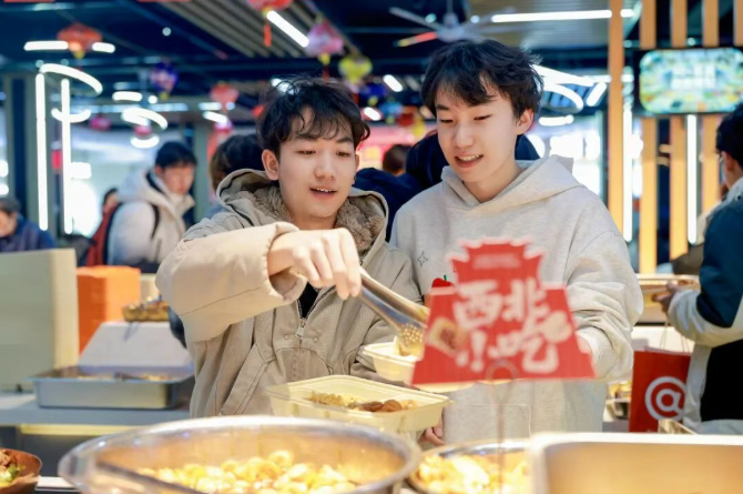 八个地域、六十余种菜品,汇聚成一条香气四溢的“神州美食街”,同学们在欢声笑语中与身旁伙伴分享家乡风味,更品味着那份独属于团圆的温暖滋味。
