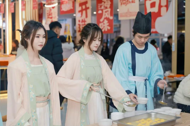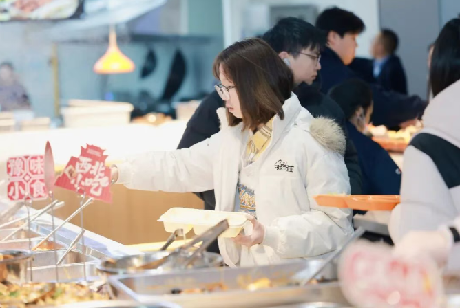 走进食堂,热气腾腾的烟火气扑面而来。哈尔滨华德学院为同学们准备了美味的汤圆及全国各地的美食。